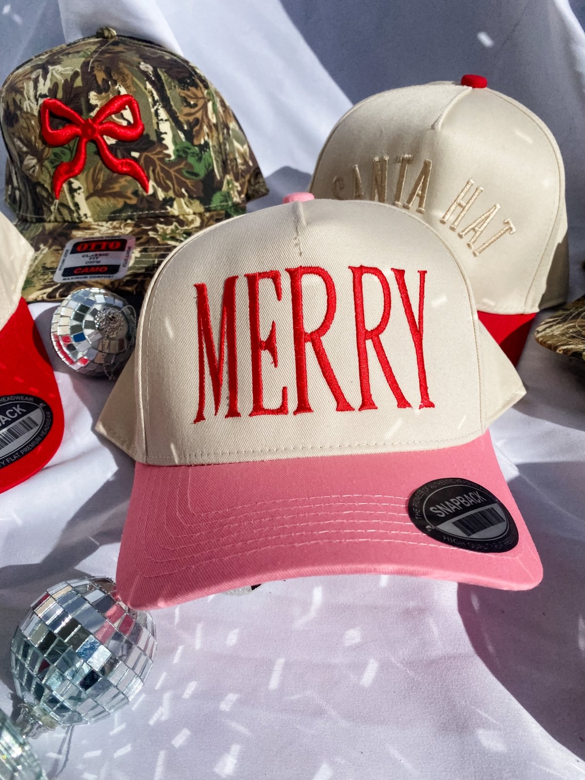 Keep it simple, sweet, and oh-so-festive. 🎄 Our Merry hat features bold red embroidery on a cream-and-pink base—a cheerful nod to holiday joy that’s effortless to style all season long.